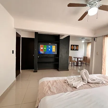 Casa de hóspedes de Cancún oferece Estúdio, Quarto duplo e Quarto deluxe com cama king para escolher. - ❓